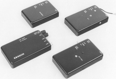 ![]() Shown here are the RR40CN pocket receiver and a 100mW, 500mW and 1W companion transmitter. The receiver pushed the state-of-the-art limits on sensitivity... better than .05uV. Its I.F. band width was 2Khz and in those days, the lower the better. They were fully transistorized but current hogs.